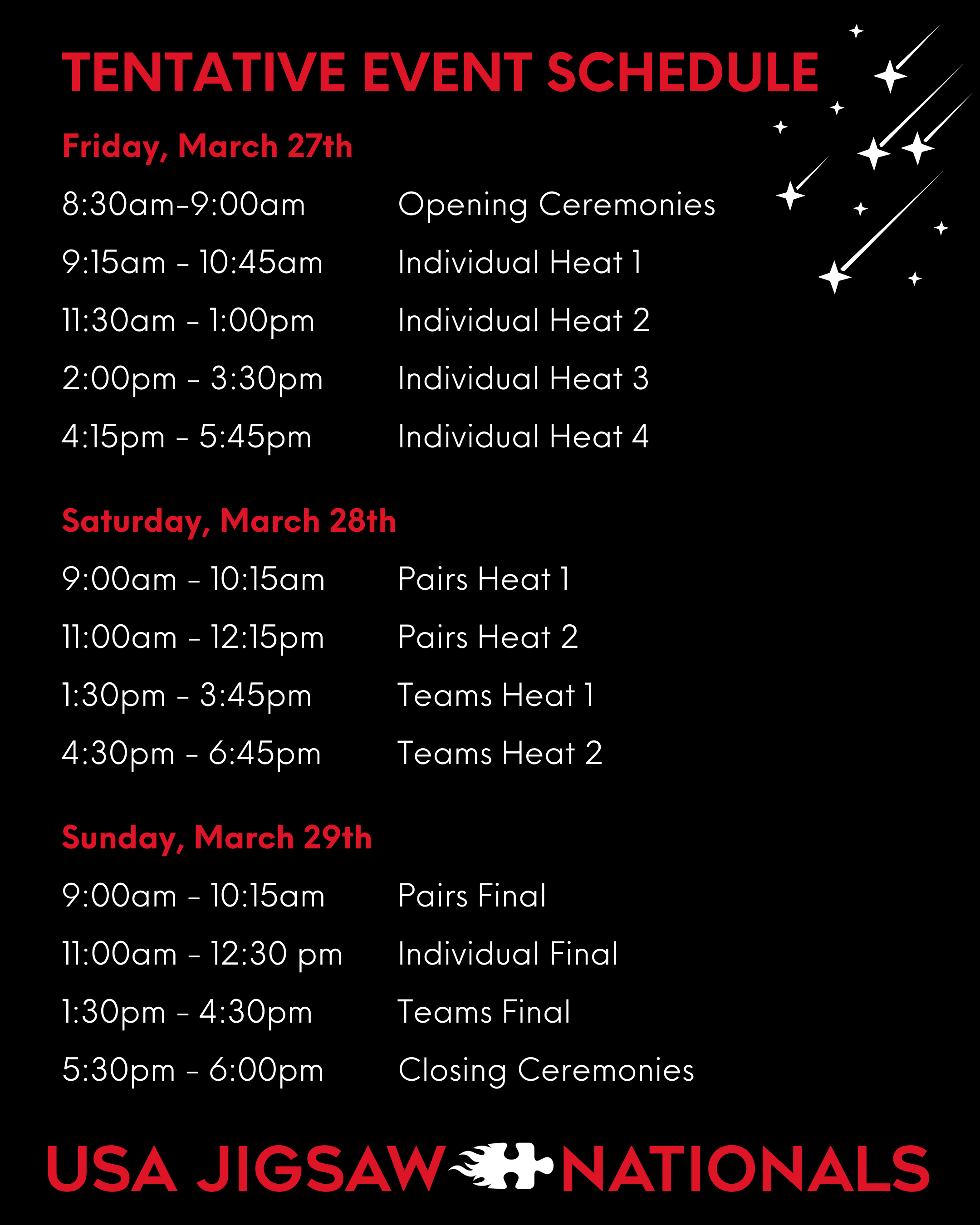 All competitors must be U.S. residents or citizens.A Jigsaw Nationals Frequently Asked Questions (FAQ)